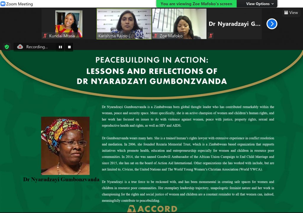 On the 2nd of June 2021 ACCORD hosted a book launch for the book Whose Peace are We Building? Leadership ...