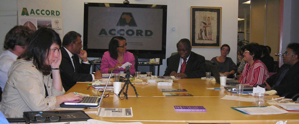 On 10 May 2012, at a ceremony at USAID’s Ronald Reagan Building in Washington D.C, ACCORD presented a citation of appreciation to USAID in recognition of support that ACCORD has received over its twenty years of existence. The citation was received on behalf of USAID by Mr. Earl Gast, the Assistant Administrator for the Africa Bureau. The citation was awarded by ACCORD in recognition of USAID’s twenty year partnership with ACCORD in pursuance of ACCORD’s mission “to encourage and promote the constructive resolution of disputes by the peoples of Africa and so assist in achieving political stability, economic recovery and peaceful co-existence within just and democratic societies”.